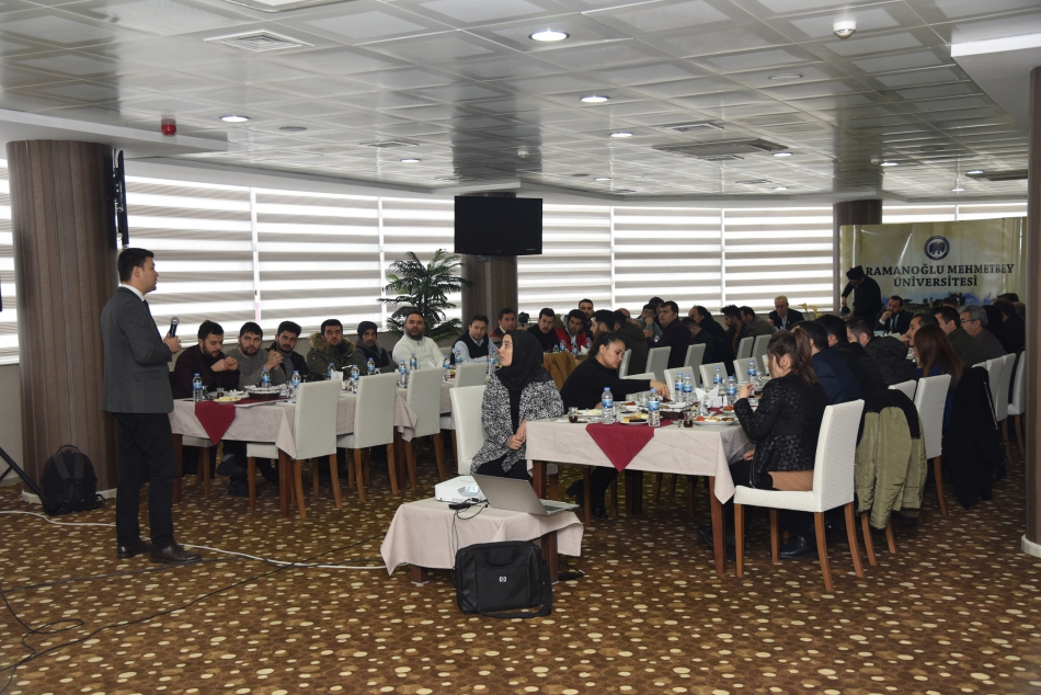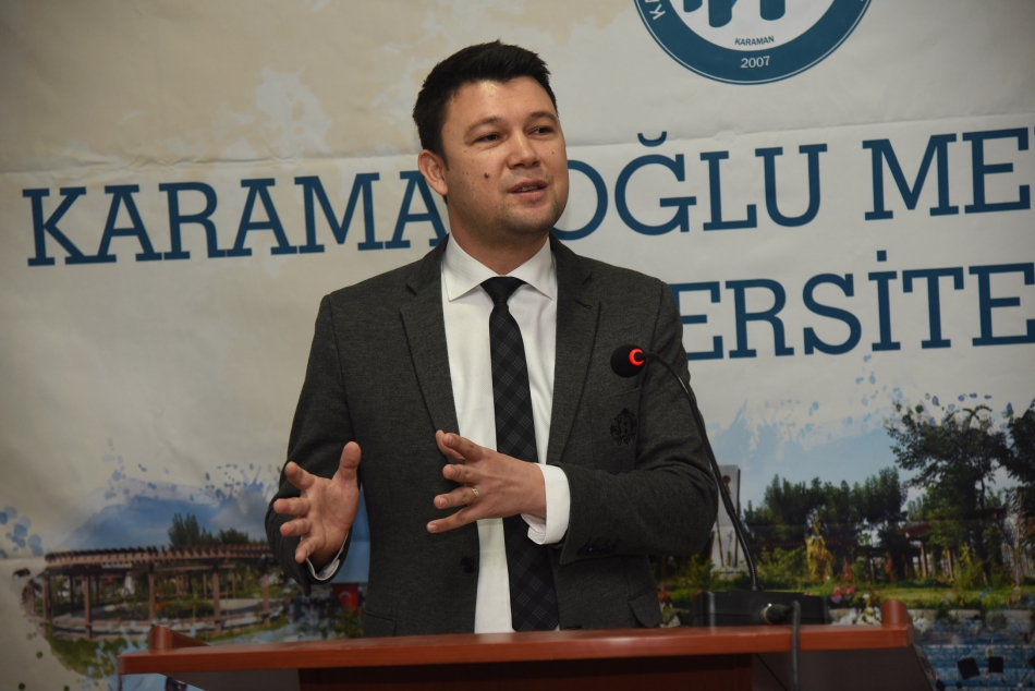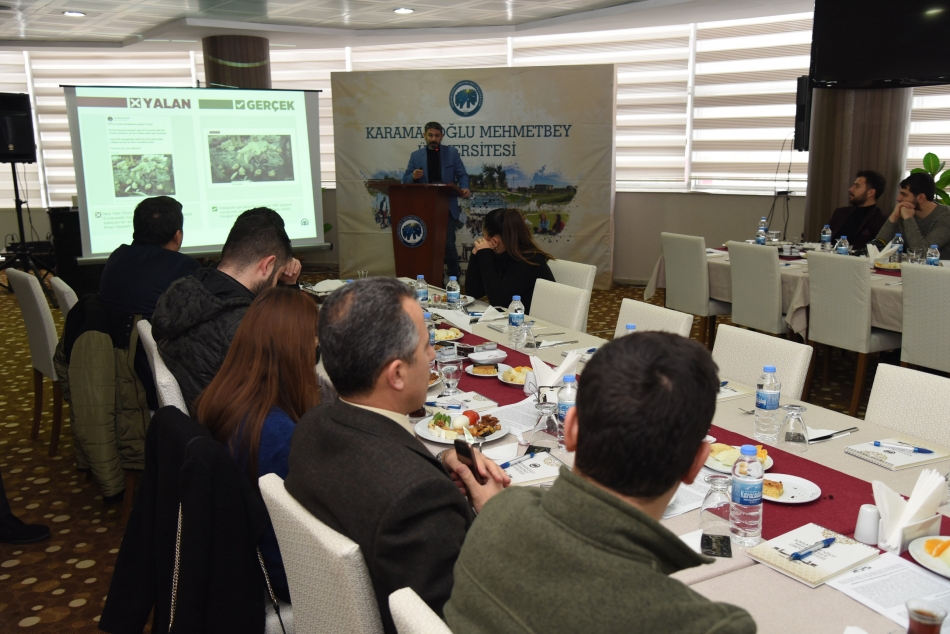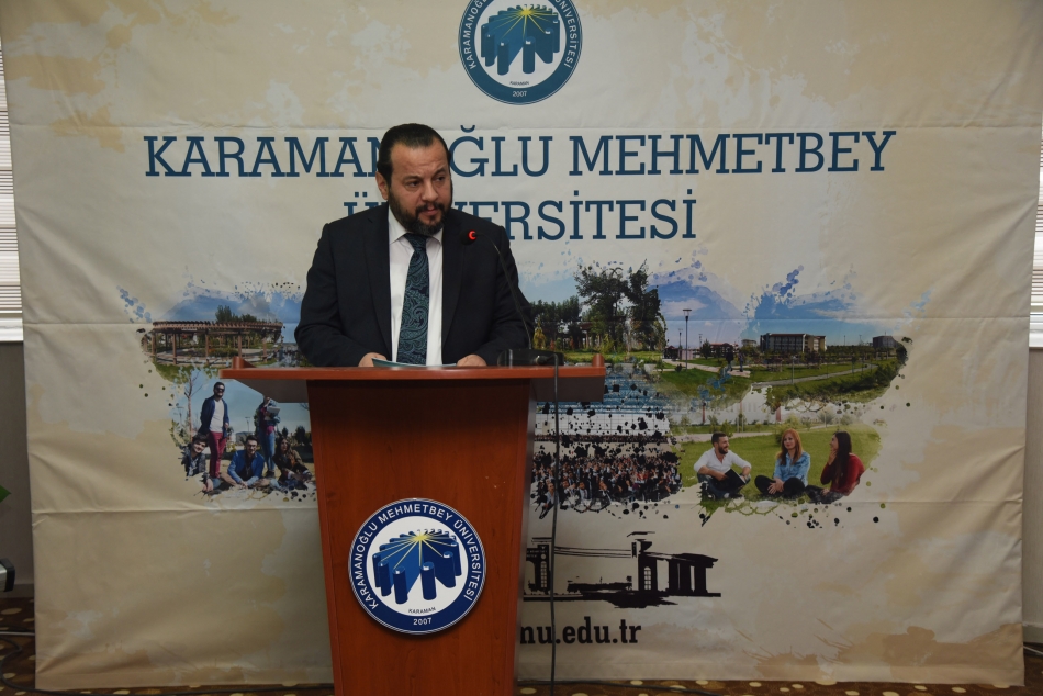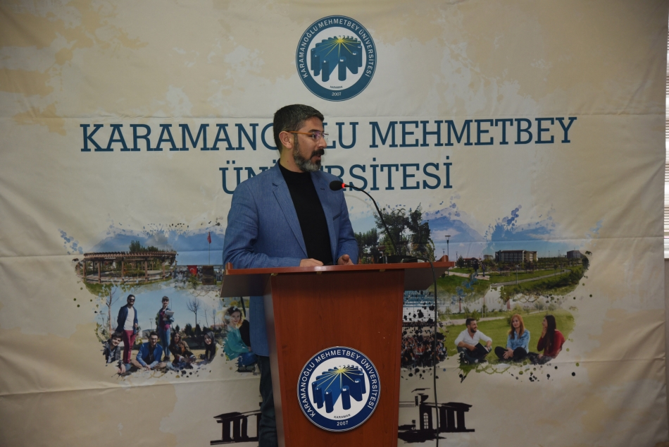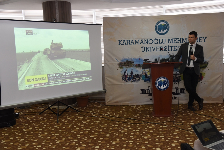 Rektör Akgül’ün açılış konuşmasının ardından sunumlarını yapmak üzere ilk olarak TRT Haber Muhabiri Hüseyin Günay kürsüye geldi. Günay "İtibar Suikasti ve Algı Yönetimi Bağlamında Yalan Haberler" başlıklı sunumunda gazete manşetlerinin insan hayatına ve çevreye etkilerine değindi.
