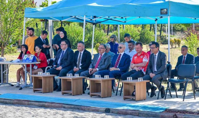 Karaman'da ilk kez düzenlenen plaj voleybolu turnuvası ile denize kıyısı olmayan kentte kum üzerinde voleybol oynayanlar keyifli anlar yaşadı