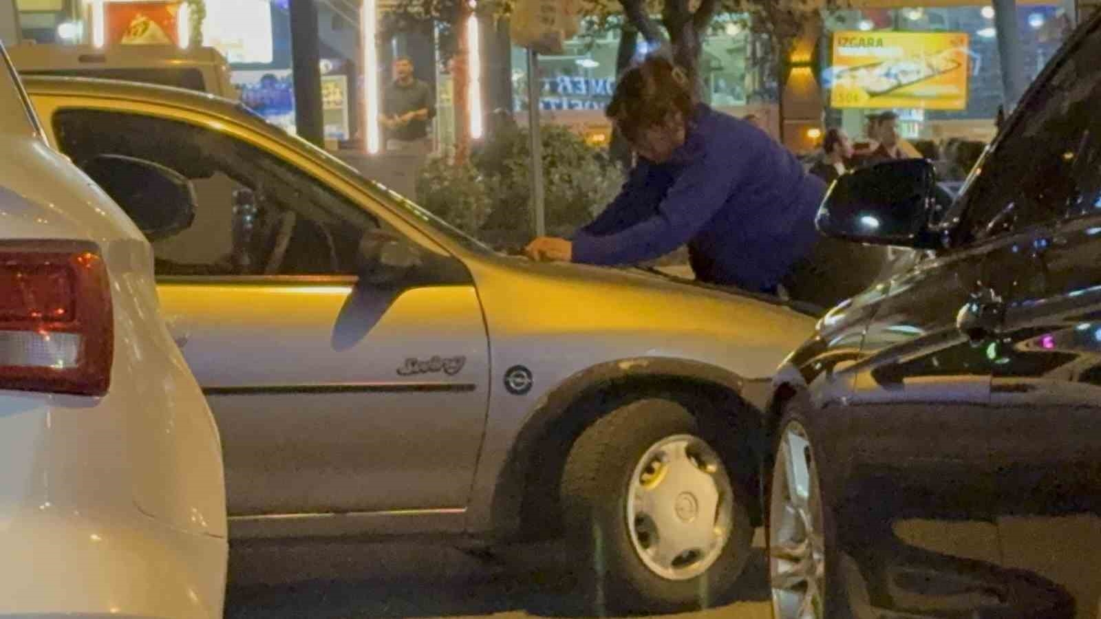 Kocasıyla tartışan kadın otomobilin kaputuna yattı