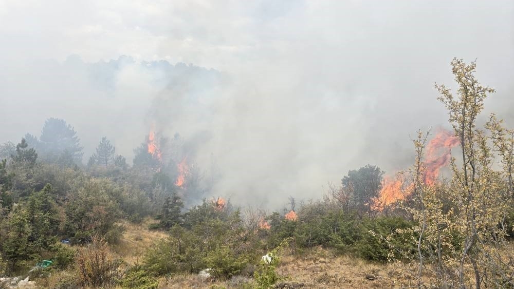 Konya'nın Derbent ilçesinde ormanlık alanda çıkan yangın güçlükle söndürüldü.