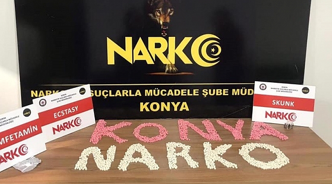 Konya'da düzenlenen operasyonda 1 kilogram eroin ile çok miktarda uyuşturucu hap ele geçirilirken, 8 kişiye madde kullanmak ve satmaktan adli işlem yapıldı.