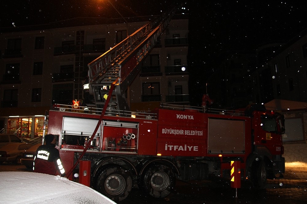 Konya'nın Beyşehir ilçesinde 4 katlı bir apartmanın çatısındaki kapalı seyir terasında çıkan yangın itfaiye ekipleri tarafından büyümeden söndürüldü.