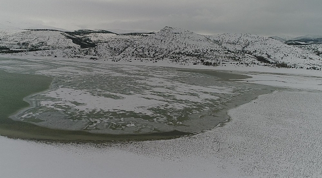 Beyşehir karayolunun 20. kilometresinde bulunan Altınapa Barajının büyük bir kısmı, gece saatlerinde hava sıcaklığının eksi 10 dereceyi görmesi ve kar yağışı sonrası buz tuttu.