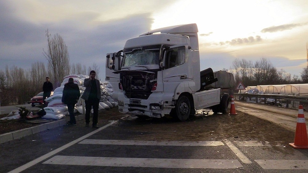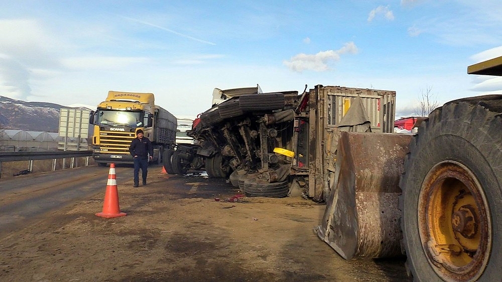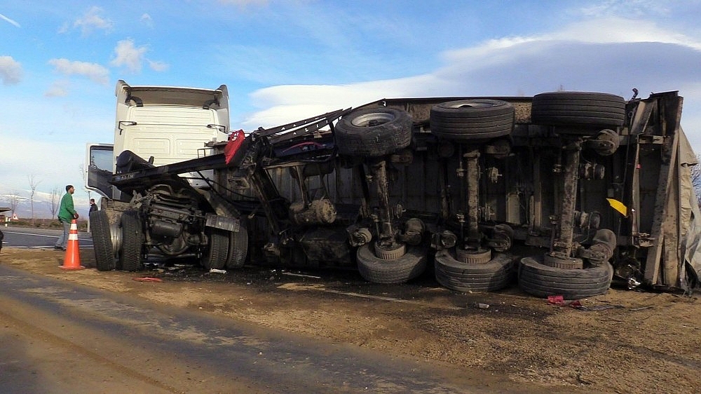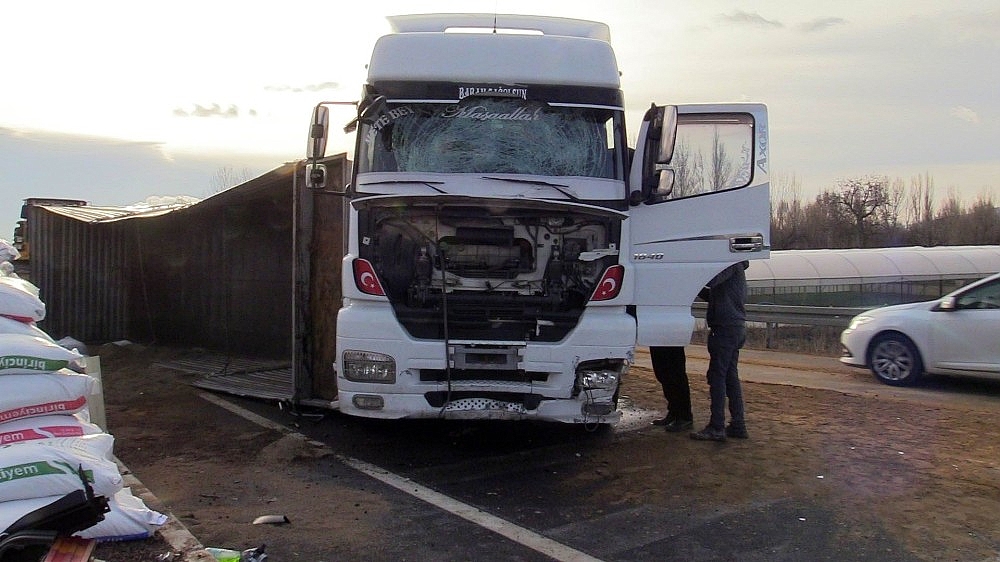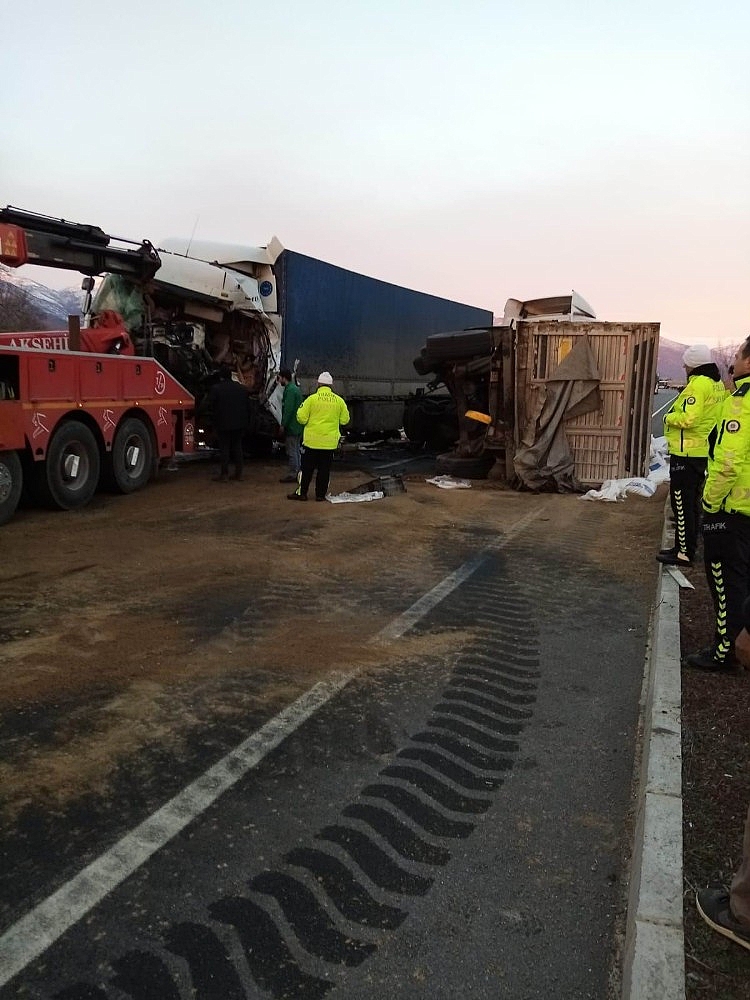 Konya'nın Akşehir ilçesi yakınlarında iki tırın çarpışması sonucu meydana gelen trafik kazasında 1 kişi hayatını kaybetti.