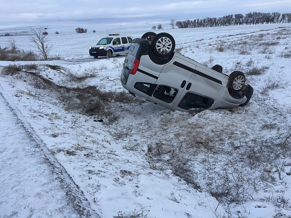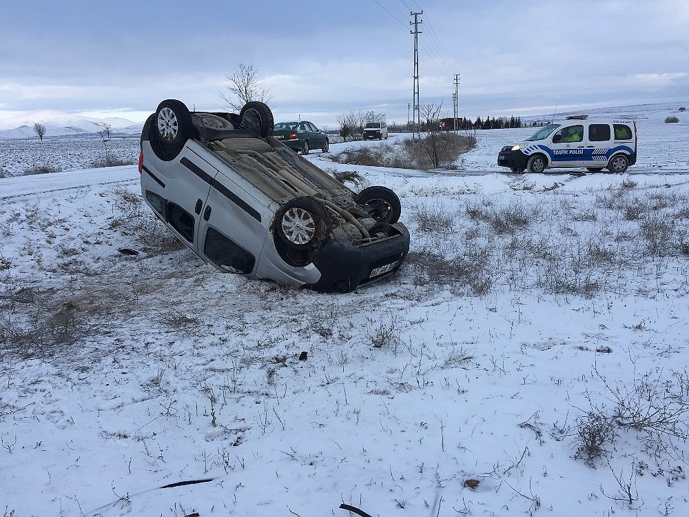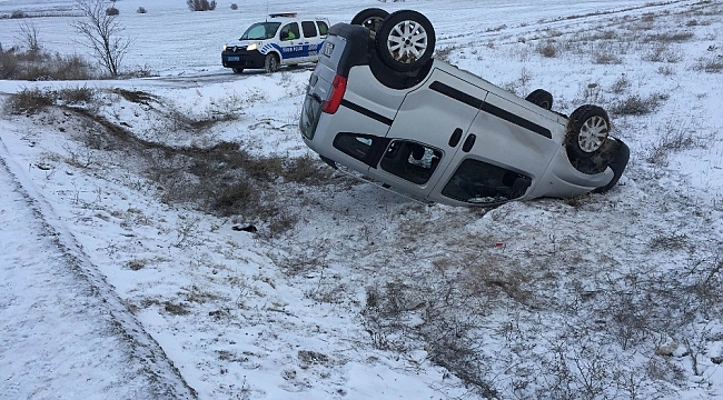 Konya'da kar yağışı nedeniyle kayganlaşan yolda kontrolden çıkan hafif ticari aracın şarampole takla atması sonucu meydana gelen trafik kazasında 3 kişi yaralandı.