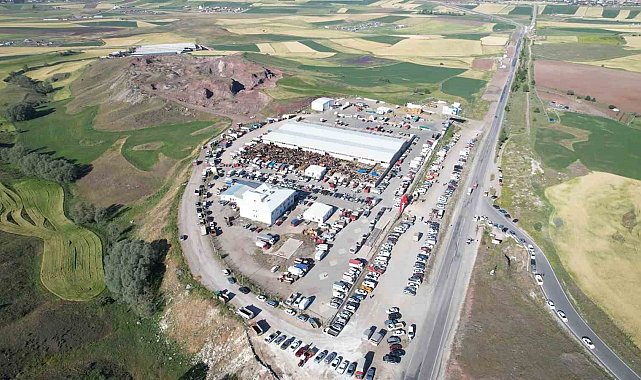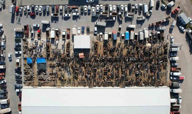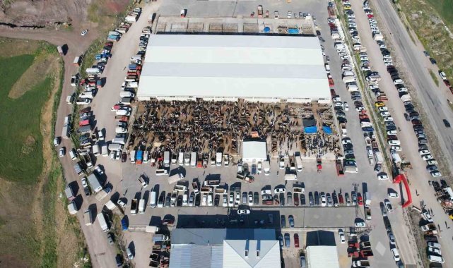 Kurban Bayramı dolayısıyla Ankara'nın Çubuk ilçesinde yer alan Canlı Hayvan Pazarı'ndaki yoğunluk, havadan görüntülendi.