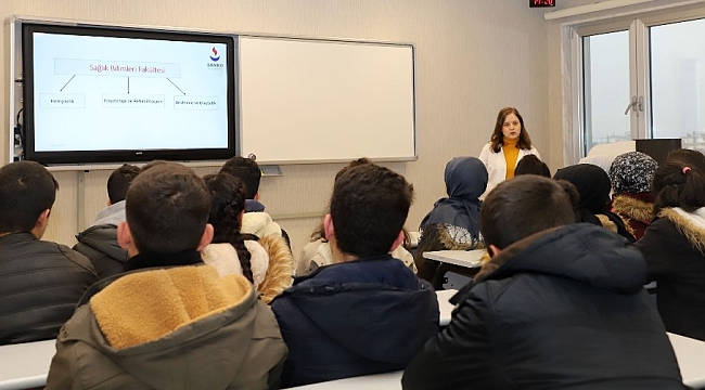 Rehberlik Birimi Öğretmeni Fatma Nur İspenoğlu ile birlikte SANKO Üniversitesi'ne gelen öğrencilere, Sağlık Bilimleri Fakültesi Hemşirelik Bölümü Halk Sağlığı Hemşireliğinden Öğr. Gör. Emine Baş, Fizyoterapi ve Rehabilitasyon Bölümünden Öğr. Gör. Hatice Adıgüzel ve Beslenme ve Diyetetik Bölümünden Diyetisyen Seren Kurtgil, üniversite, bölümler, eğitim ve uygulamalar hakkında bilgi verdi.