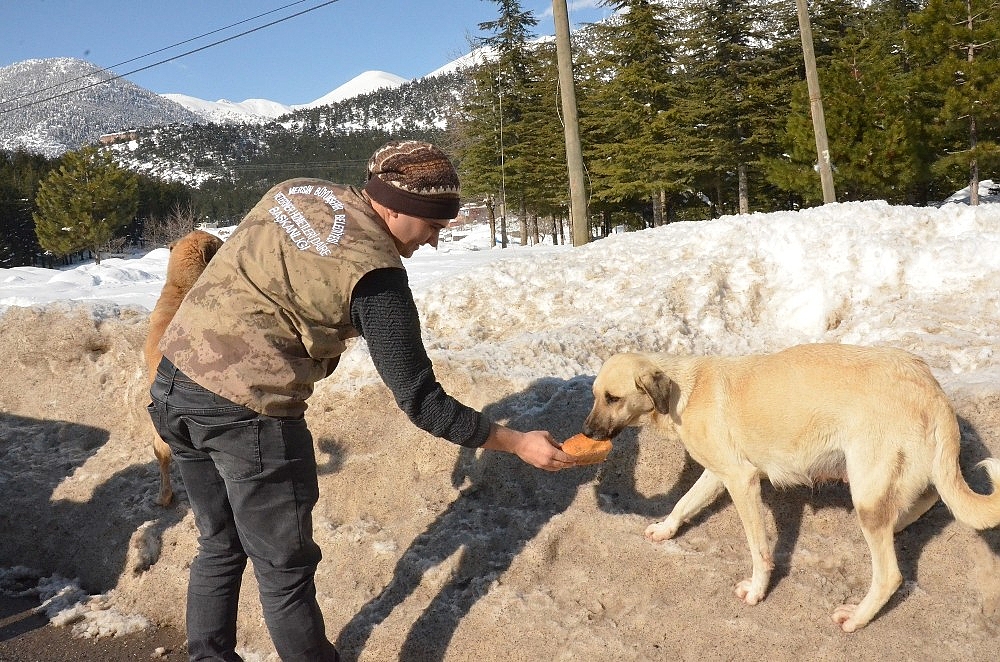Mersin Büyükşehir Belediyesi Tarsus Doğa Parkı ekipleri, soğuk hava şartlarının ve yağışların etkili olduğu Tarsus ilçesine bağlı Karboğazı mevkiinde yiyecek bulmakta zorlanan hayvanlar için atlara sap balyası ve besi yemi, yabani kuşlara buğday ve mısır ile Halk Ekmek Fabrikası'ndan getirilen bayat ekmekler ile kedi ve köpek mamalarını gerekli yerlere bırakarak, hayvanları besledi.