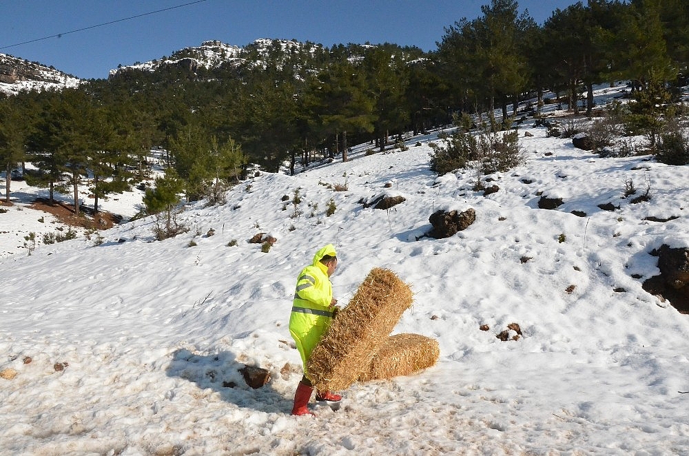 Mersin Büyükşehir Belediyesi ekipleri, zorlu kış şartlarında sağanak ve kar yağışının oluşturduğu olumsuzlukları süratle ortadan kaldırırken, bir taraftan da doğanın diğer unsurları olan yaban hayvanlarını unutmuyor. Ekipler bu kapsamda, Tarsus'a bağlı Gülek Mahallesi Karboğazı mevkiinde yoğun kar yağışı nedeniyle yiyecek bulmakta zorlanan yaban hayvanları için doğaya yem bıraktı.