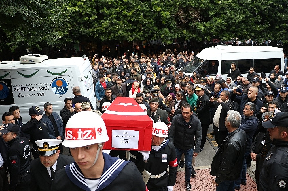 Cenazede baba Osman Akay metanetini korumaya çalışırken, anne Kezban Akay ile kız kardeşi Pelin Su, şehidin tabutuna sarılıp uzun süre göz yaşı döktü. Evladının Türk bayrağına sarılı tabutu önünde asker selamı veren acılı anne, askerlerin elinde bulunan oğlunun fotoğrafını da defalarca öptü. Anne Kezban Akay'ı, Kültür ve Turizm Bakan Yardımcısı Nadir Alparslan, TBMM Plan ve Bütçe Komisyonu Başkanı Lütfi Elvan ile Mersin Valisi Ali İhsan Su teselli etmeye çalıştı.