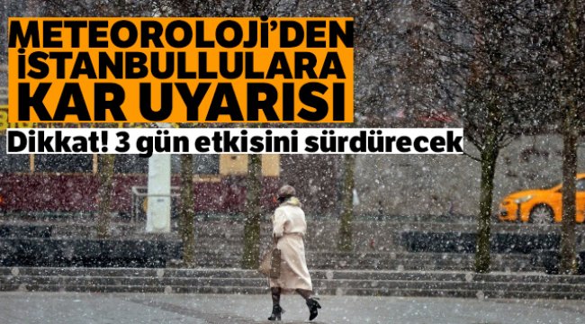 Meteoroloji Müdürlüğünden yapılan açıklamalara göre İstanbul'da beklenen kar yağışı etkisini tekrar gösterecek. İstanbulluları perşembe gününden itibaren etkisini göstermesi beklenen kara karşı dikkatle uyaran hava tahmin uzmanı Bayram Doğan, “İstanbul'da Perşembe sabah saatlerinde yağmur şeklinde görülecek yağışın öğle saatleri itibariyle karla karışık şekle dönmesini bekliyoruz. Akşam saatlerinde kar şeklinde görülecek. Cuma ve cumartesi günü de kar şeklinde devam edecek. İstanbul'da ayrıca çarşamba ve perşembe kuvvetli rüzgar olacak. Özellikle çarşamba lodos hakim olacak. Perşembe günü de lodos yerini karayele devredecek. Dolayısıyla hava sıcaklıkları 10 - 15 derece düşmüş olacak. Çarşamba günü 10, 15 derece olan hava sıcaklıkları Perşembe günü 4, 5 dereceye kadar düşmesini bekliyoruz" dedi.
