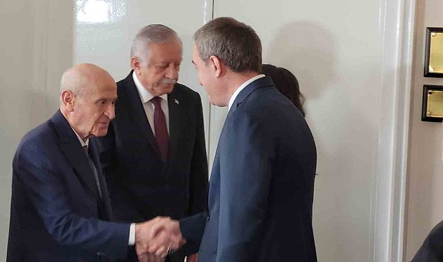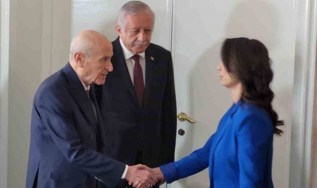MHP Genel Başkanı Devlet Bahçeli, terör örgütü PKK'nın silah bırakma ve fesih kararının ardından DEM Parti Eş Genel Başkanları Tuncer Bakırhan ve Tülay Hatimoğulları ile görüştü. Bahçeli'ye görüşmede Meclis Başkanvekili Celal Adan ve Genel Başkan Yardımcısı Feti Yıldız eşlik ederken, DEM Parti heyetinde ise Grup Başkanvekilleri Sezai Temelli ve Gülistan Kılıç Koçyiğit de yer aldı. Bahçeli, Meclisteki makamında gerçekleşen görüşmede DEM Parti heyetini kapıda karşıladı. Basına kapalı gerçekleşen görüşme yaklaşık 40 dakika sürdü. Görüşmenin ardından Bahçeli, Bakırhan ve Hatimoğulları'nı yine kapıya çıkarak uğurladı.