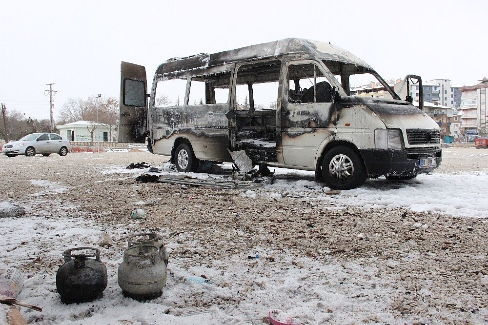 Yangın, saat 11.30 sıralarında İmaret Mahallesi Turgut Özal Caddesi üzerinde bulunan otopark içerisinde çıktı. Edinilen bilgiye göre, geceyi otelde geçiren 6 kişilik aile, daha sonra otoparka park ettikleri 01 EMM 72 plakalı minibüsün yanına geldi. Minibüse binen aile havanın soğuk olması nedeniyle minibüs içerisindeki piknik tüpünü yakarak ısınmak isteyince tüp bir anda alev aldı. Aile kendini dışarıya atarak canını zor kurtarırken, minibüs alev topuna döndü. Yanan minibüsü suyla söndürmeye çalışan Adem Ö.'nün elleri yandı. Olay yerine gelen itfaiye ekibi yanan minibüsü kısa sürede söndürürken, minibüs tamamen yanarak demir yığınına döndü. Elleri yanan Adem Ö. ise olay yerine gelen ambulansla kaldırıldığı Karaman Devlet Hastanesinde tedavi altına alınırken, sağlık durumunun iyi olduğu öğrenildi.