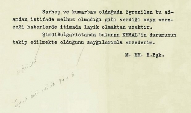 Milli İstihbarat Teşkilatı (MİT), özel koleksiyonunda yer alan "İngiliz Kemal" hakkında görüş bildiren raporlar ve dönemin Almanya'nın Ankara Büyükelçisi Franz Von Papen'in uğradığı suikasttan sonra gönderilen tebrik mektupları ve belgeleri içeren bir bölümü paylaştı. MİT'in resmi internet sitesinde "Özel Koleksiyon" içinde ziyaretçilerin erişimine açılan belgeler kısmında 2 raporu daha yayımladı. Aralarında en eskisi 85 yıllık olan belgelerde adına romanlar ve filmler çekilmiş "İngiliz Kemal" lakabıyla bilinen Ahmet Esat Tomruk'a ait olumsuz görüş içeren rapor ve dönemin Almanya Ankara Büyükelçisi Franz Von Papen'in uğradığı suikasttan kurtulması sonrası gönderilen tebrik mektubuna ait rapor paylaşıldı. "İngiliz Kemal"e olumsuz görüş Milli Mücadele yıllarındaki istihbarat faaliyetlerine dair adın romanlar yazılan ve filmler çekilen "İngiliz Kemal" nam-ı diğer Ahmet Esat Tomruk hakkında Milli Emniyet Hizmeti Riyaseti'nin (MAH) olumsuz görüşünü içeren 26.12.1940 tarihli bir yazıya koleksiyonda yer verildi. Milli Emniyet Hizmeti Riyaseti tarafından dönemin Genelkurmay Başkanlığına yazılan raporda İngiliz Kemal lakabının yanı sıra Boksör Kemal, Kemal Esat ve Gözlüklü Kemal isimleri de taşıyan Tomruk'un uzun zamandır ilgi ile takip edildiği kaydedilmiş. Ayrıca Tomruk'un edindiği bilgilerin yurtdışı gezilerinde edindiği ağızdan duyma olduğu ve bir zamanlar Hizmetçe de İngiliz Kemal'in kullanıldığı aktarılmış. Raporda Tomruk hakkında olumsuz görüş bildiren kısım şu ifadelerle verilmiş: "Sarhoş ve kumarbaz olduğu da öğrenilen bu adamdan istifade melhuz olmadığı gibi verdiği veya vereceği haberlerde itimada layık olmaktan uzaktır. Şimdi Bulgaristan'da bulun Kemal'in durumunun takip edilmekte olduğunu saygılarımla arz ederim." Büyükelçi Von Papen'e mektup gönderen muhtara "Alman sempatisi" notu Dönemin Almanya'nın Ankara Büyükelçisi Von Papen, 1942 yılında kendisine mektup gönderen İzmir'in Karşıyaka ilçesi Şemikler Köyü Muhtarı Şakir'e cevap mektubu ve MAH İzmir Merkez Amirliği'nden konuya ilişkin 21.04.1942 tarihli raporu da koleksiyonda paylaşıldı. Dönemin haberlerinde de yer aldığı üzere suikasta uğrayıp kurtulan Von Papen'e tebrik mesajı gönderen Şemikler Köyü Muhtarı Şakir'in mektubu üzerine Von Papen'in cevap mektubu, zarf üzerinde açık adrese yer verilmemesi üzerine MAH'a gönderilip görevlendirilen bir postacı ile Muhtar Şakir'e ulaştırılması sağlandığı raporda yer almış. Köy Muhtarı Şakir hakkında yapılan araştırmalarda, Von Papen'i şahsen tanımadığı, Almanlara karşı beslediği sempati dolayısıyla gazetede okuduğu bomba hadisesini müteakip Von Papen'e bir mektup yazarak olaydan sağ kurtulmasından dolayı memnuniyet duyduğu mektubu gönderdiği kaydedilmiş. Büyükelçi Von Papen tarafından kaleme alınan cevap mektubunda ise şu ifadelere yer verilmiş: "Sayın Bayım, Türk Milletinin muhtelif tabakalarından tebriknameler meyanında sizinki bilhassa memnuniyetimi mucib olmuştur. Beni hatırlayarak iyi temennilerde bulunmanızdan dolayı kalbi teşekkürlerimi sunarım. Milletlerimiz arasındaki büyük dostluğun takviyesi için bundan sonra da çalışabileceğimden bahtiyarım. Bilvesile en iyi temennilerimi saygılarımla beraber sunarım."