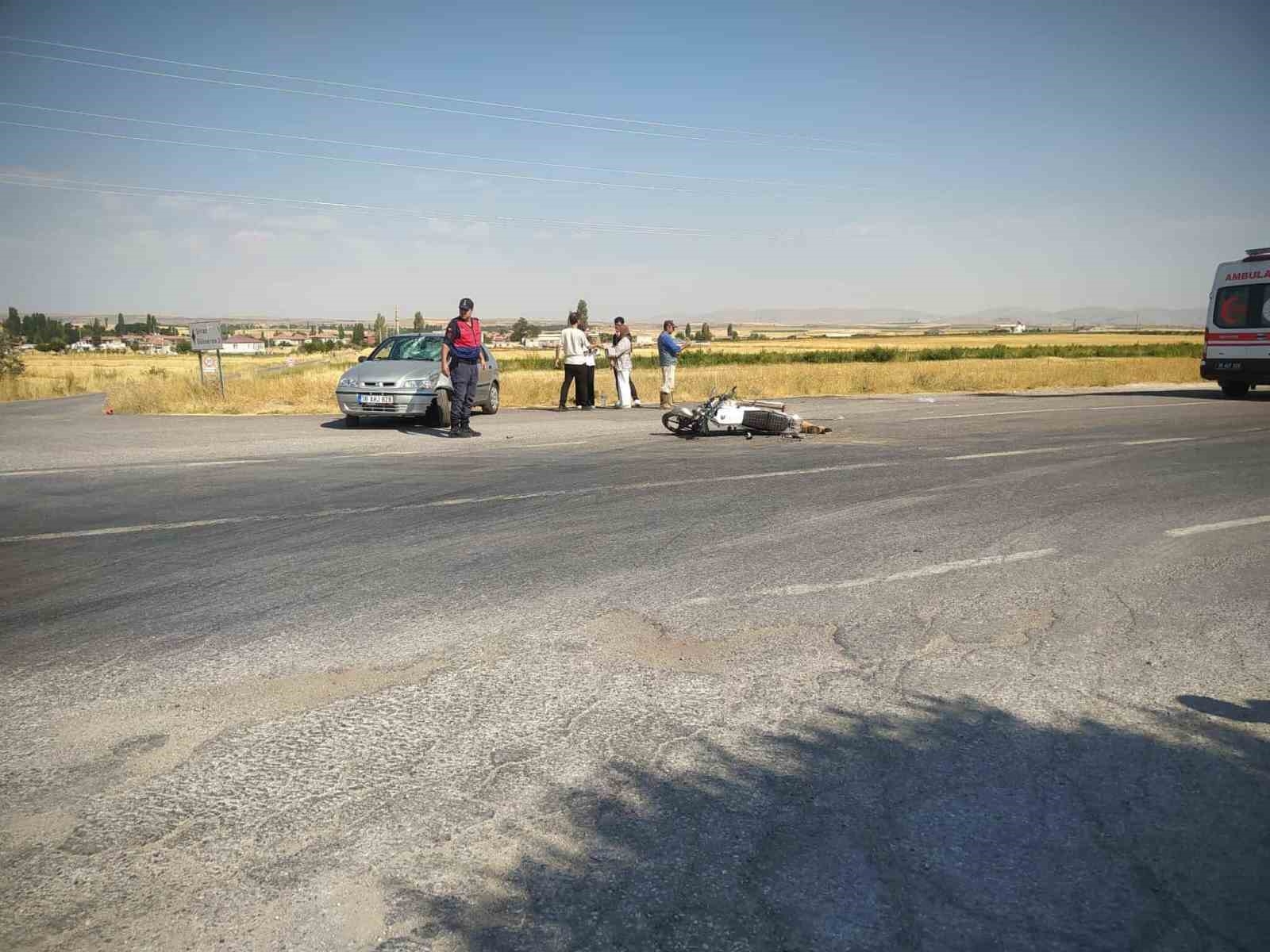 Kayseri'nin Tomarza ilçesinde motosiklet ve otomobilin çarpışması sonucu bir kişi yaralandı.