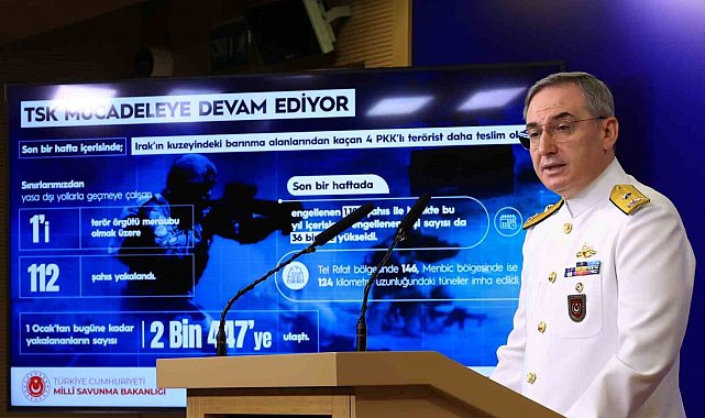 Türk Silahlı Kuvvetlerinin devam eden operasyon, arama-tarama ve sınır güvenliği faaliyetlerinin devam ettiğini belirten Tuğamiral Aktürk, "Son bir hafta içerisinde, Irak'ın kuzeyindeki barınma alanlarından kaçan 4 PKK'lı terörist daha teslim olmuş, sınırlarımızdan yasa dışı yollarla geçmeye çalışan 1'i terör örgütü mensubu olmak üzere 112 şahıs yakalanmış, 1 Ocak'tan bugüne kadar yasa dışı yollarla geçmeye çalışırken yakalananların sayısı 2 bin 447'ye, son bir haftada engellenen bin 192 şahıs ile birlikte bu yıl içerisinde engellenen kişi sayısı da 36 bin 3'e ulaşmıştır. Suriye Harekât Alanlarında ise 8 Ocak'tan bu yana sürdürülen 'tünel imha' faaliyetleri kapsamında bugüne kadar Tel Rıfat bölgesinde 146, Menbic bölgesinde ise 124 kilometre uzunluğundaki tüneller imha edilmiştir" ifadelerini kullandı.