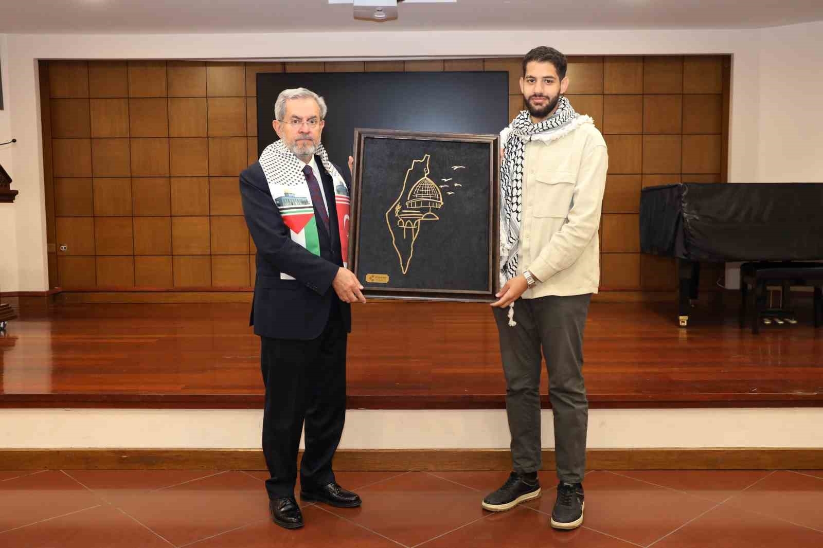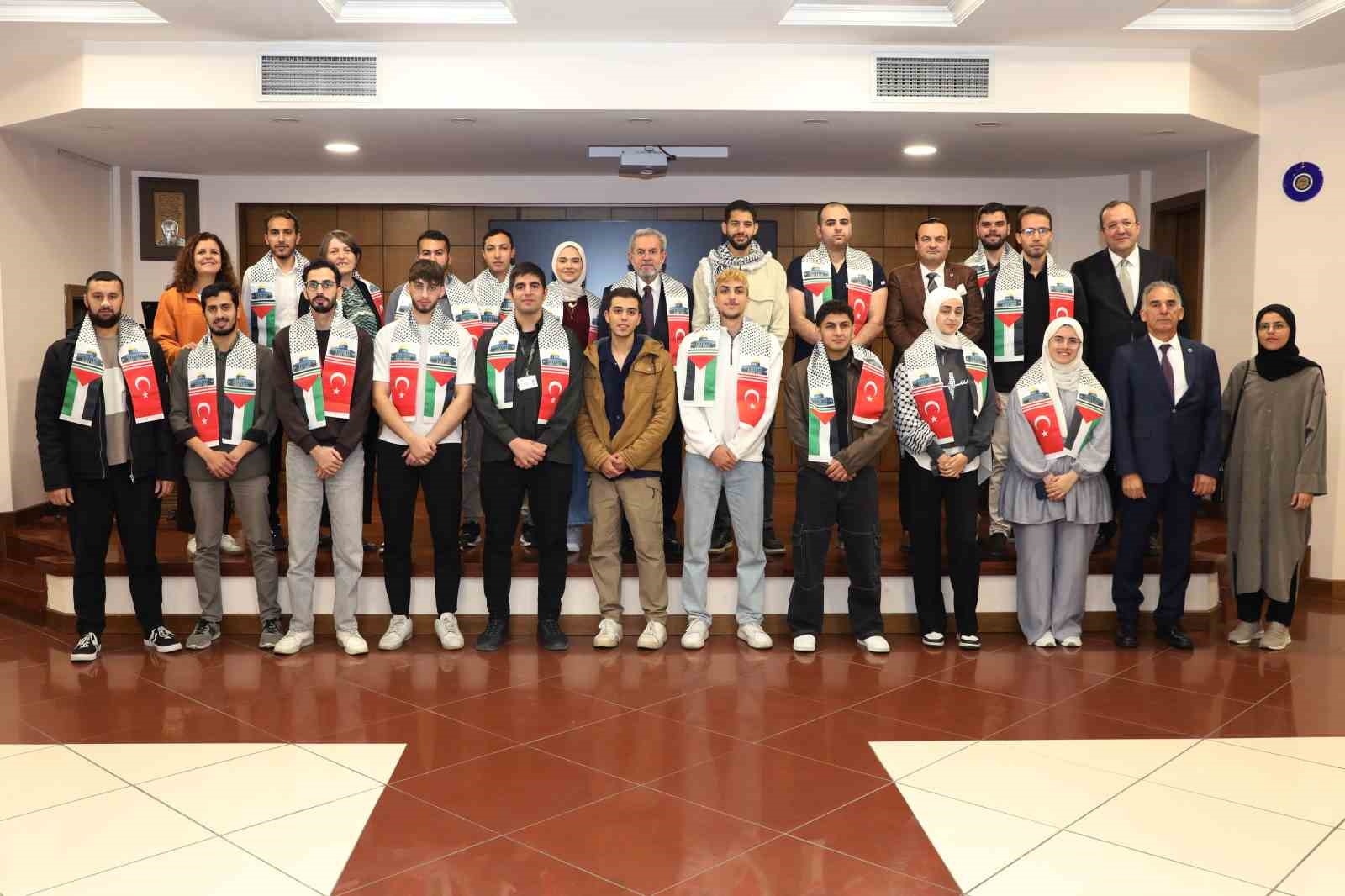 Ankara Üniversitesi Rektörü Necdet Ünüvar, Ankara Üniversitesi'nde öğrenim gören Filistinli öğrencilerle bir araya geldi.