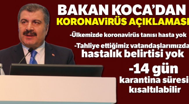 Ülkemizde koronavirüs tanısı konan hiçbir vatandaşımız olmadı. Tahliye ettiğimiz vatandaşlarda hastalık belirtisi yoktur.