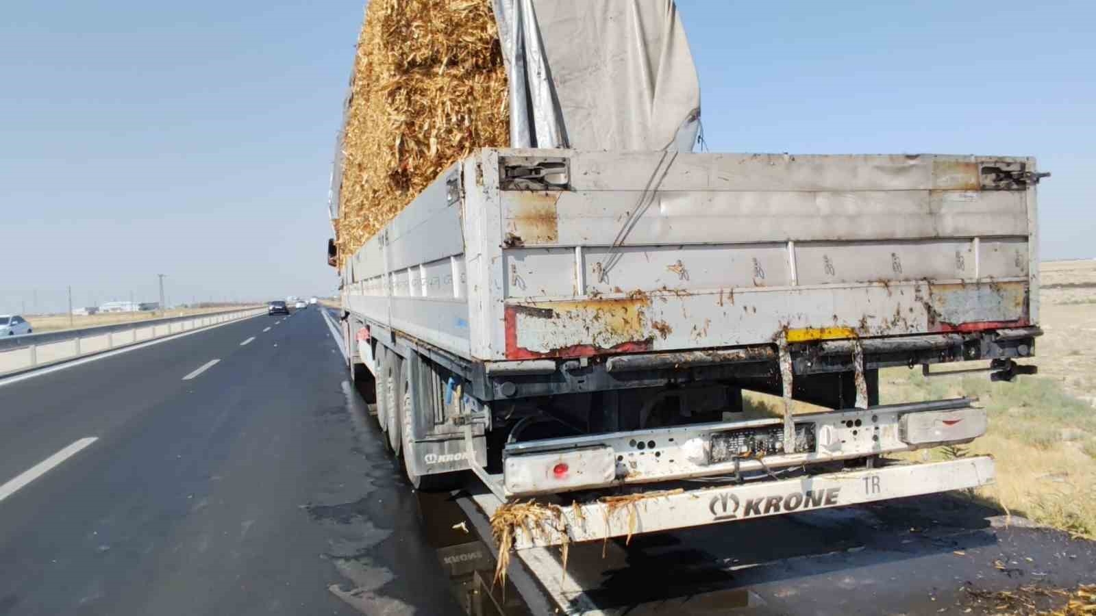 Aksaray'da saman yüklü tırda, samanların tutuşmasıyla başlayan yangın korkuttu. Diğer sürücülerin, tır sürücüsünü uyarmasıyla adeta faciadan dönüldü.