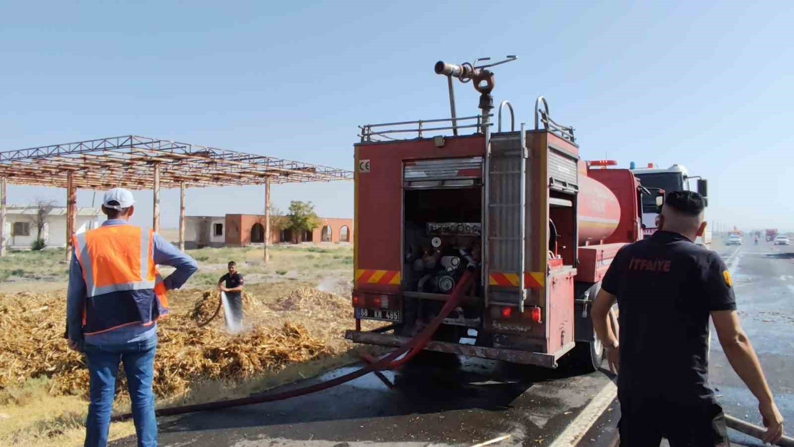 Aksaray'da saman yüklü tırda, samanların tutuşmasıyla başlayan yangın korkuttu. Diğer sürücülerin, tır sürücüsünü uyarmasıyla adeta faciadan dönüldü. Yangın, Aksaray-Konya kara yolu Yapılcan köyü yakınlarında yaşandı. Edinilen bilgiye göre, Aksaray'dan Konya istikametine seyreden R.Ö. (56) idaresindeki 50 ADY 348 plakalı saman yüklü tırın dorsesindeki samanlar, bilinmeyen bir nedenle alev aldı. Yangını fark eden diğer sürücüler tır şoförünü uyardı. Uyarılar üzerine tırı sağa çeken sürücü dorseye çıkarak yanan saman balyalarını yol kenarına attı. Sürücülerin uyarması ve sürücünün anında müdahalesiyle tır yanmaktan kurtulurken, itfaiye ekipleri tarafından yanan saman balyaları söndürüldü.