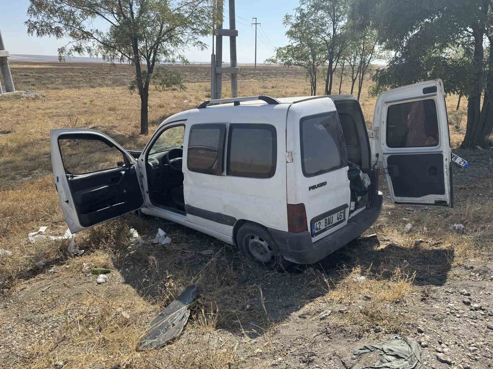 Konya'nın Kulu ilçesinde kontrolden çıkan hafif ticari araç şarampole düşerken, araçtakiler kazayı hafif atlattı.