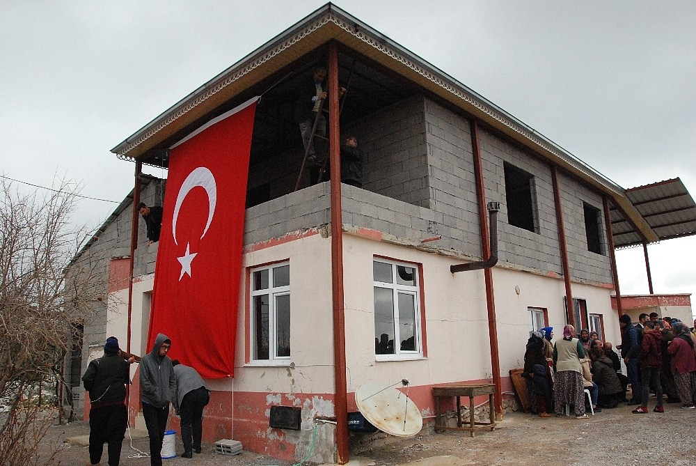 Türk bayrakları ile donatılan şehidin evinde Kur'an-ı Kerim okunup tüm şehitler için dualar ediliyor.
