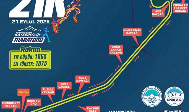 Kayseri Büyükşehir Belediyesi tarafından geleneksel hale getirilen ve bu yıl 5'incisi 'Soğanlı Vadisi' teması ile düzenlenecek olan Uluslararası Kayseri Yarı Maratonu heyecanı büyüyor. 21 Eylül 2025'te koşulacak 5'inci Uluslararası Kayseri Yarı Maratonu 21K, 10K ve Halk Koşusu parkurları belli oldu.