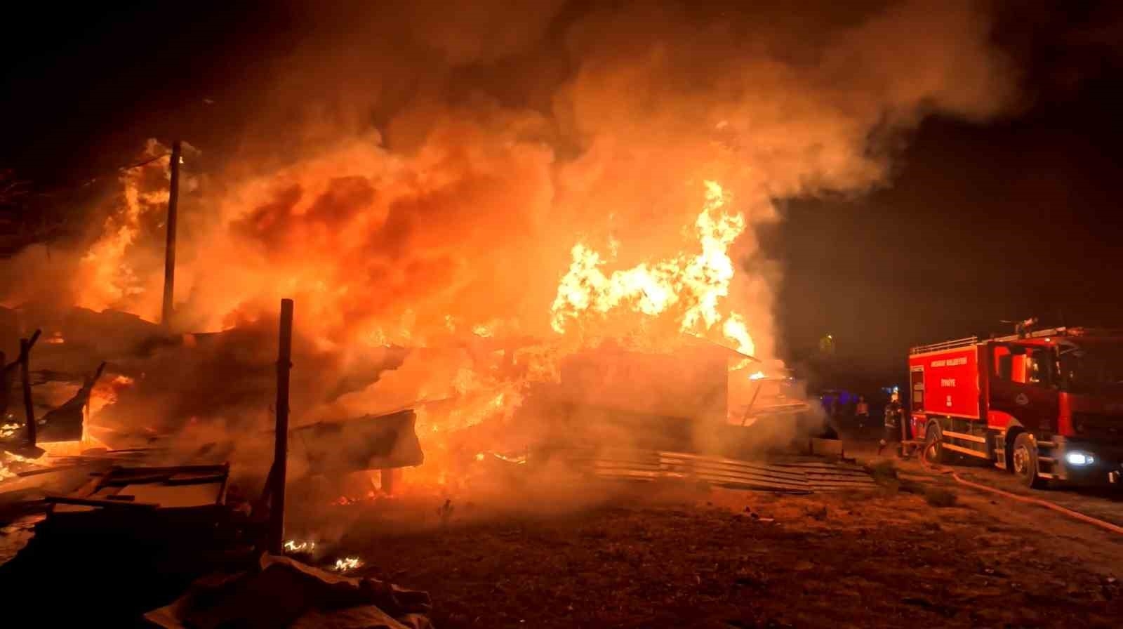 Aksaray'da müstakil evin bahçesinde tandırda ekmek yapıldığı esnada odunluk bölümüne sıçrayan kıvılcım evi adeta alev topuna çevirdi. Ev, bahçe ve odunluğun küle döndüğü yangın kameralara yansıdı. Yangın, Hacılar Harmanı Mahallesi 5844. Sokak'ta bulunan müstakil bir evde meydana geldi. Edinilen bilgiye göre, M.B.'ye (70) ait müstakil evin bahçesinde tandırda ekmek yapmak isteyen ev sahibi tandırı yaktı. Yakılan tandırdan kıvılcımların hemen yanında bulunan odunluğa sıçraması ile yangın çıktı. Ev ve odunluk alev topuna dönerken, vatandaşlar durumu 112 Acil Çağrı Merkezine bildirdi. İhbar üzerine olay yerine çok sayıda itfaiye ekibi sevk edildi. İtfaiye ekipleri müdahale ederken olay yerine kepçe ve greyderler de gönderildi. Alevlerin sardığı evdeki yangını söndürme çalışmaları 2 saattir sürdürülüyor. Evinin yandığını öğrenen ev sahibinin oğlu ise olay yerinde fenalık geçirdi. "Evimiz yandı annem" diye feryat edip gözyaşı döken şahsı komşuları sakinleştirmeye çalıştı. Polis yangınla ilgili inceleme başlattı.