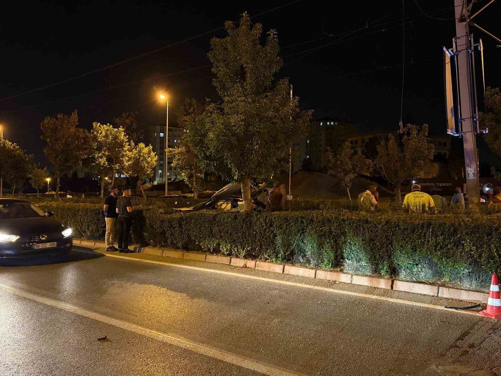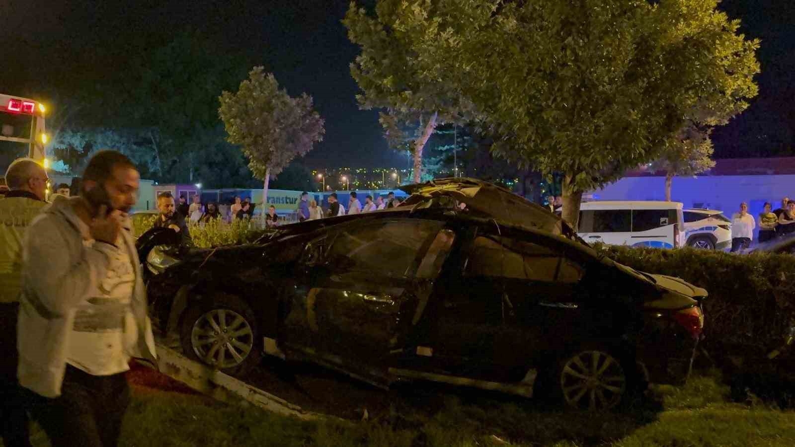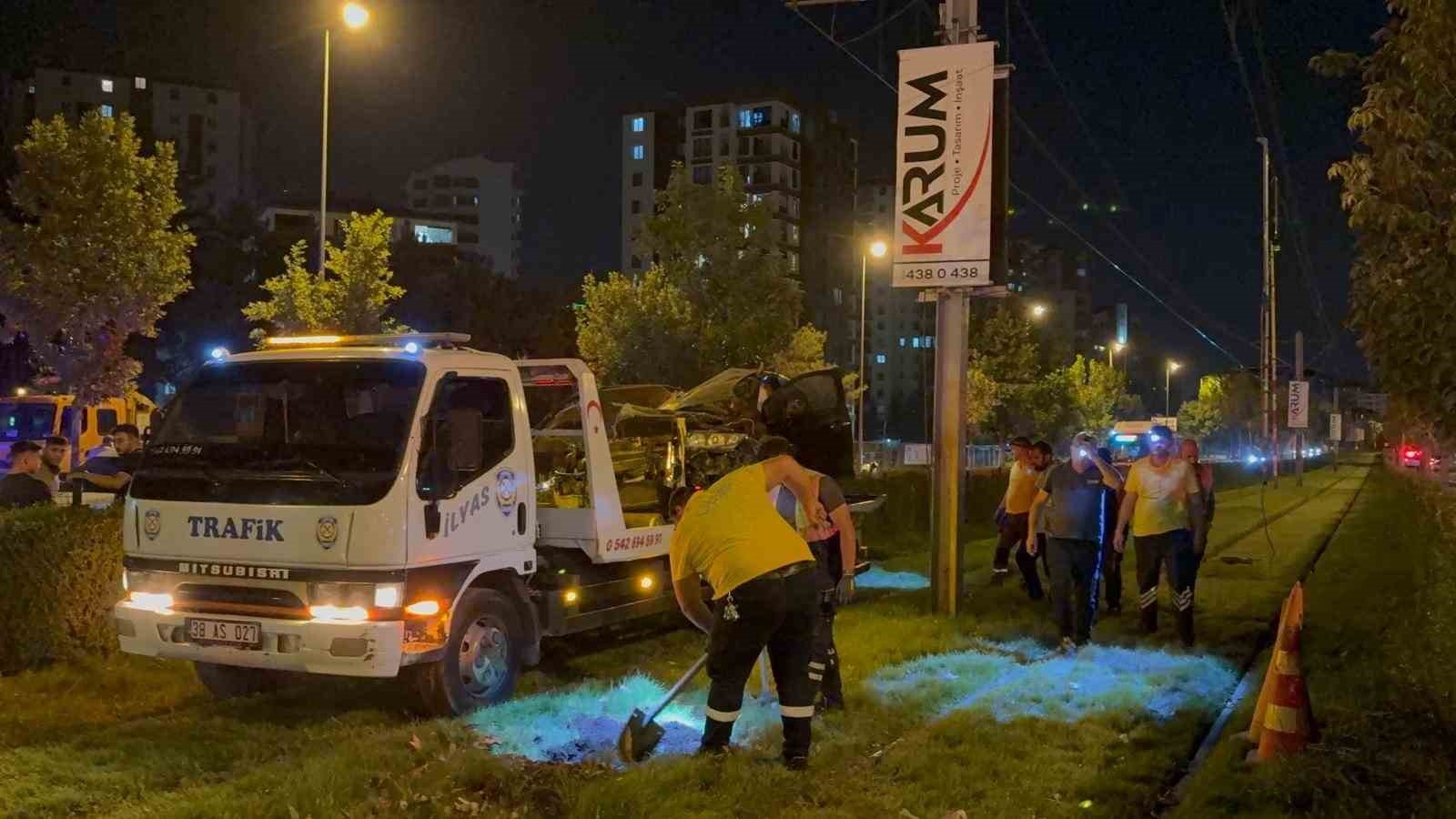 Tramvay yoluna uçan otomobil hurdaya döndü: 1 ölü, 1 yaralı