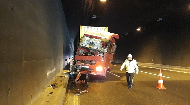 Kaza nedeniyle tünel içerisinde ulaşım tek şeritten kontrollü olarak sağlanıyor.