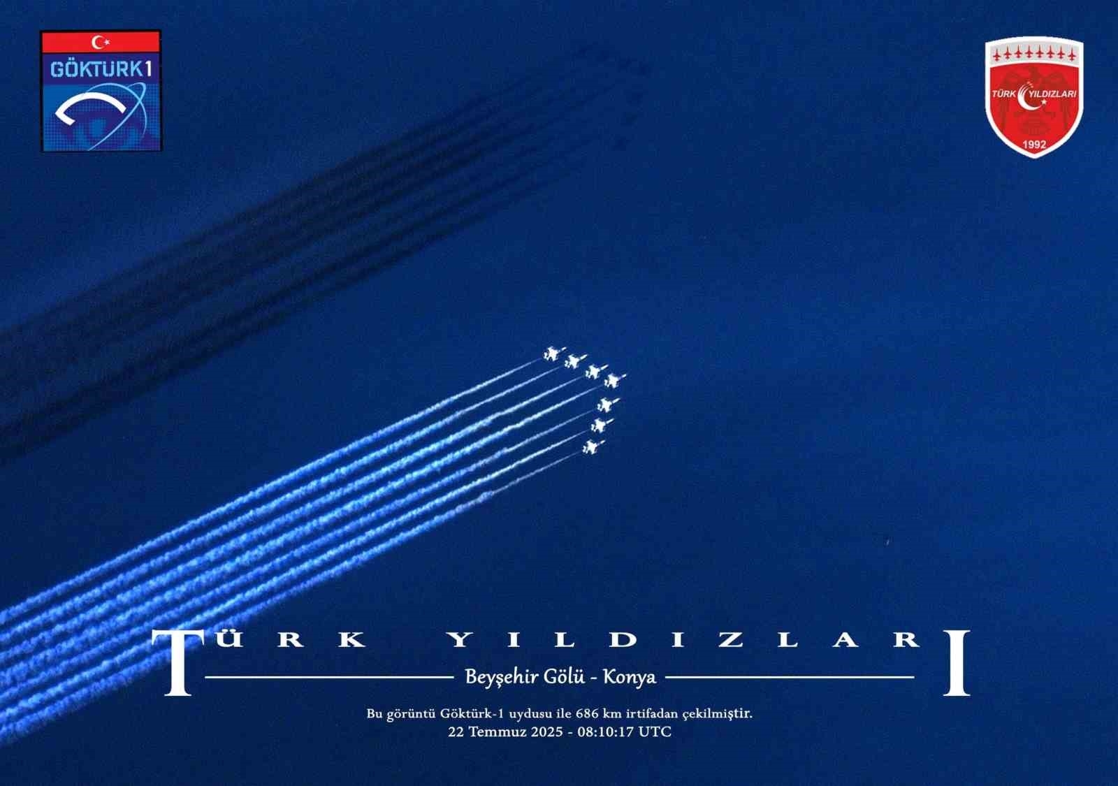 Türk Yıldızları'nın Beyşehir Gölü üzerinde 100 metre irtifada yaptığı uçuş Göktürk Uydusu tarafından fotoğraflandı. Türk Yıldızları tarafından yapılan sosyal medya paylaşımında, "Göktürk'ün gözünden. Beyşehir Gölü üzerinde 100 metre irtifada 740 km/saat hızla yaptığımız uçuş, 686 km yükseklikten 7,5 km/saniye hızla dönen uydumuz tarafından ölümsüzleştirildi" ifadelerini yer verildi.
