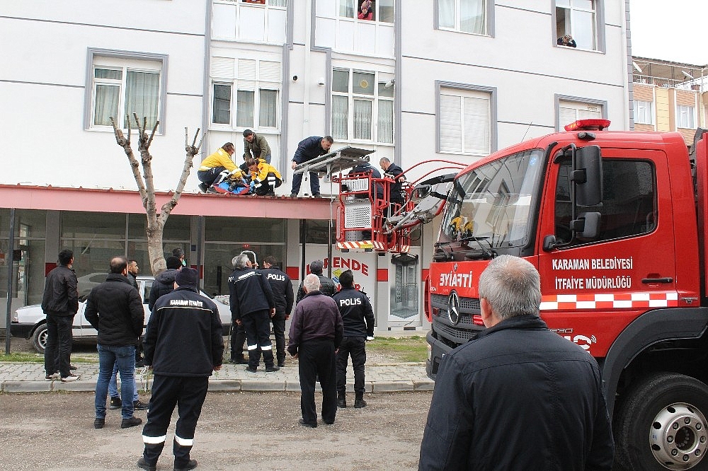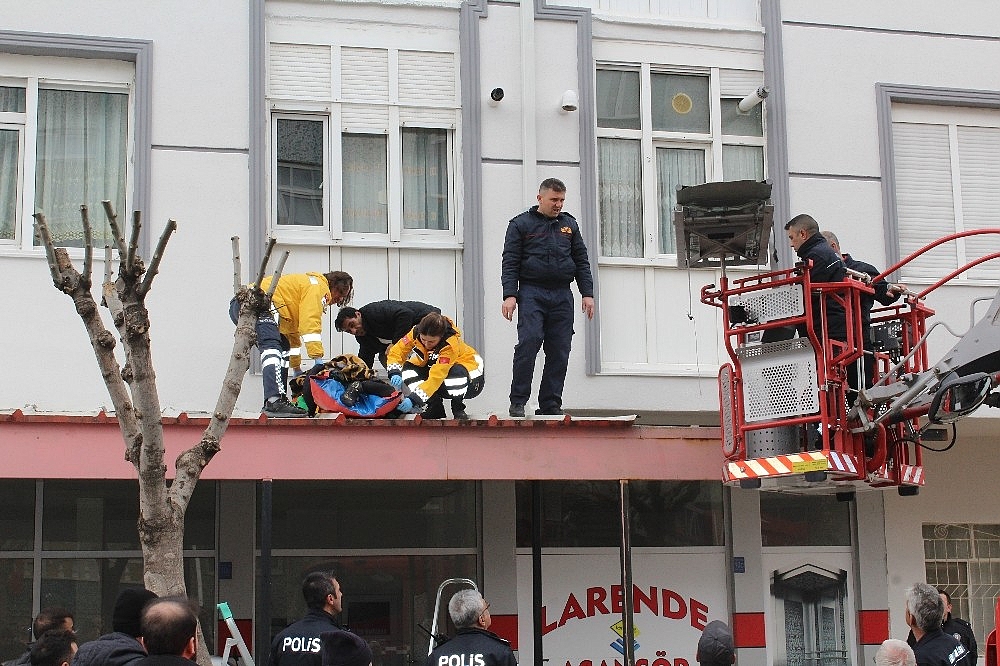 Sedyeye alınan genç, itfaiye merdiveninin sepetiyle aşağıya indirildi. Ambulansa alınan ve bilinci yerinde olmayan Ünal Ş., kaldırıldığı Karaman Devlet Hastanesinde tedavi altına alındı.