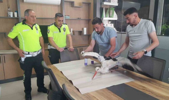Konya'nın Karapınar ilçesinde polis ekipleri, yol denetimi sırasında fark ettikleri yaralı leyleği tedavisi için veterinere götürdü.